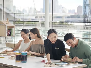 3. 艺术作品“水晶宇宙(Crystal Universe)”的地面采用镜面设计。如果访客对地面的反射感到担忧,建议穿长裤或短裤。或者,我们的工作人员可以在艺术作品入口处为您提供纱笼。