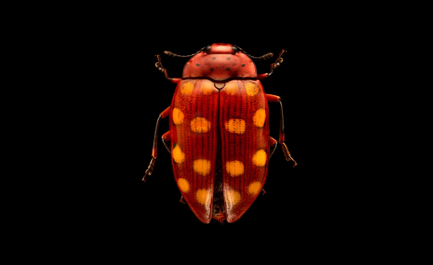 这类甲虫是瓢虫的近亲,各物种呈现出几乎不胜枚举的鲜明色彩、斑点、条纹等图案组合。它们的艳丽色彩当然并非为了取悦人类,相反,这些醒目图案充当警戒色,向天敌昭示其具备精巧而复杂的化学防御体系。