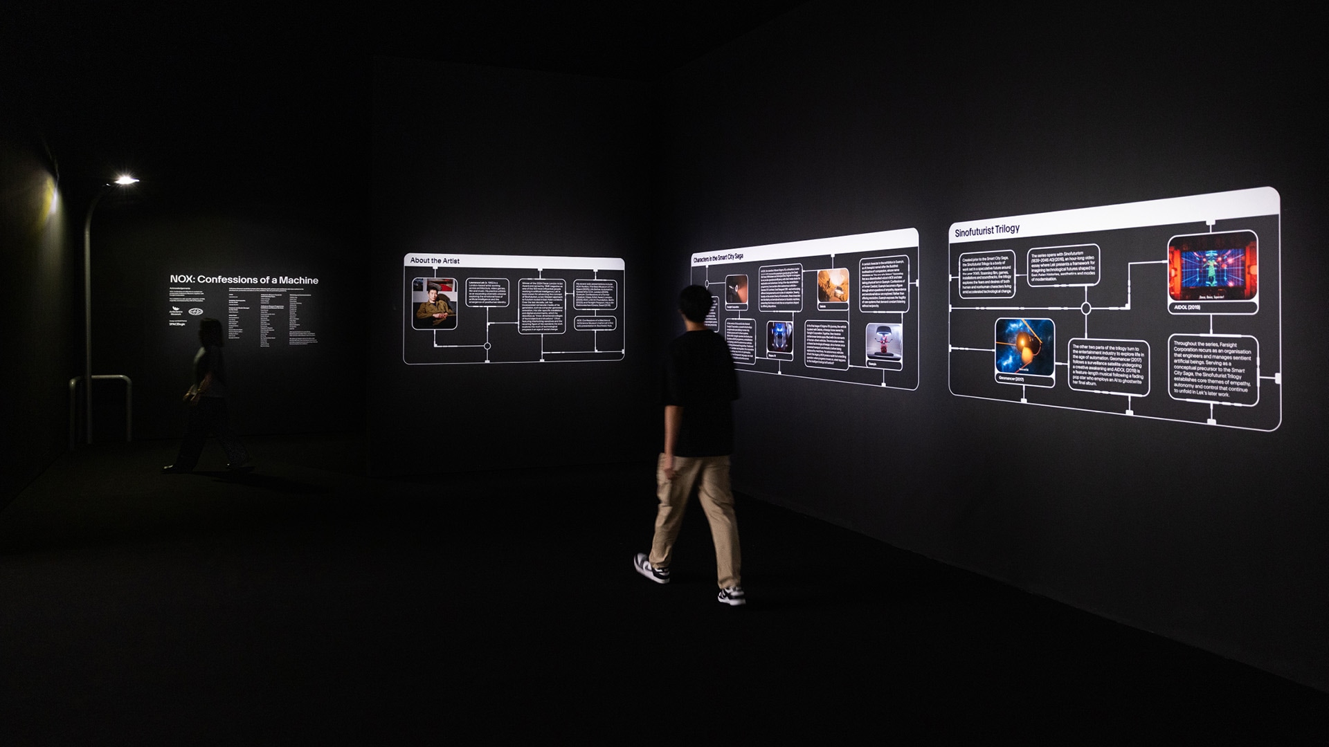 这个沉浸式体验结合了两个相互关联的作品:NOX和Guanyin: Confessions of a Former Carebot,邀请我们想象一个由智能基础设施和自治系统塑造的近未来。